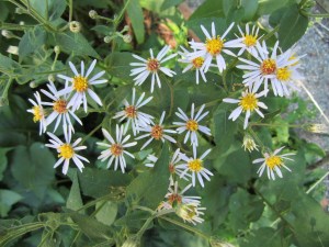 Notes: A wild aster with large fuzzy leaves nick-named Lumberjack Toilet Paper, forming a dense ground cover in rich woods. Host to the Pearl Crescent