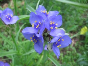 Flower Type: Light purple to blue-violet scentless flowers, about 1″ across with 3 rounded petals, 6 bright yellow anthers and fine violet hair near the base, appear in small clusters on hairless stems at plant top in Mid-June to Early September, a long flowering season with few flowers open at a time. Flowers close by early afternoon on sunny days.